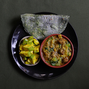 Posto and Coconut Vegetable, with Rongin Roti and Guava Salad. (1:1). The price includes 5% VAT and a 10% service charge will be added.